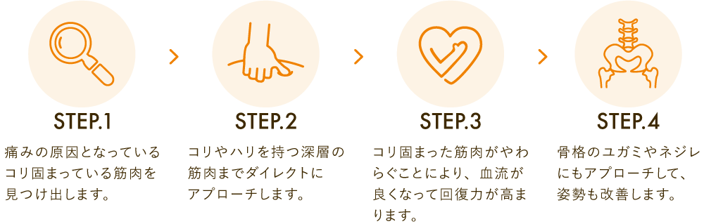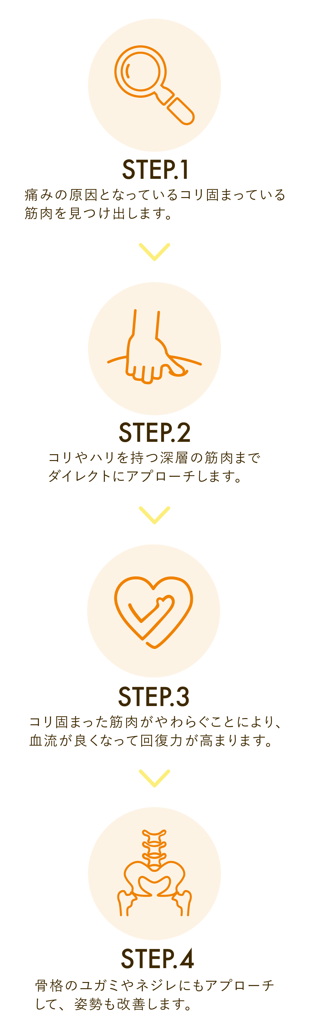 その日の状態やご希望に合わせてしっかり揉みほぐしていきます。
